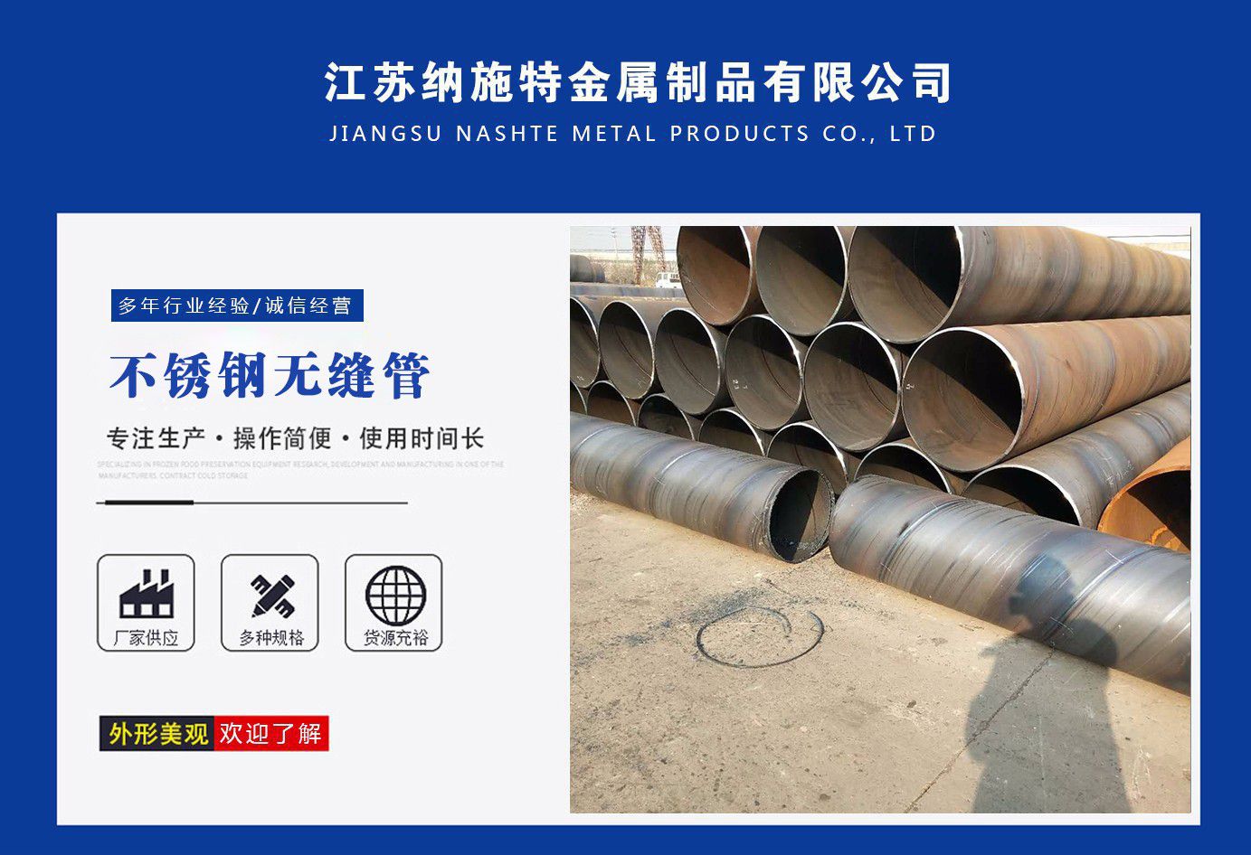 江蘇納施特金屬制品有限公司是一家集生產205不銹鋼無縫管,2507不銹鋼無縫管,316l不銹鋼焊管廠家,不銹鋼工業焊管廠家,厚壁無縫鋼管廠家等產品,公司庫存多規格齊全、質量保證。公司一貫以服務至上、質量至上、價格合理、客戶至上、讓利客戶、薄利多銷為原則,誠實守信為宗旨。  公司秉承“優質的品質和服務創造企業品牌”之宗旨,與國內外多家知名廠商建立了長期穩定的合作伙伴關系,精心匯聚各廠商的品牌產品,實現了資源互補,以適應市場的不同需求,協助廣大廠商提高自身的競爭力,是您的理想合作伙伴。  公司下屬:業務部、財務部、快運部、運輸部、倉儲部、加工部、(自備貨車、吊車、行車、自動切割、半成品)免費為用戶提供裝卸等一條龍服務。保證用戶利益、互惠互利做生意、誠心誠意交朋友。  服務承諾:提供優質的不銹鋼及有關產品,遵守道德標準,努力提供獨特的產品和高水平服務。  質量承諾:隨時為客戶提供產品和服務,充分領會客戶要求,盡職盡責,永無例外,竭盡全力,持續發展。  公司秉承:“顧客至上,銳意進取”的經營理念,堅持“客戶至上”的原則為廣大客戶提供優質的服務。  愿我們公司和社會各界同仁、諸位朋友、尊貴的各位客戶攜手并進,共同發展,同繪新世紀的宏偉藍圖!  公司宗旨:優質的品質和服務創造企業品牌。  經營理念:以...